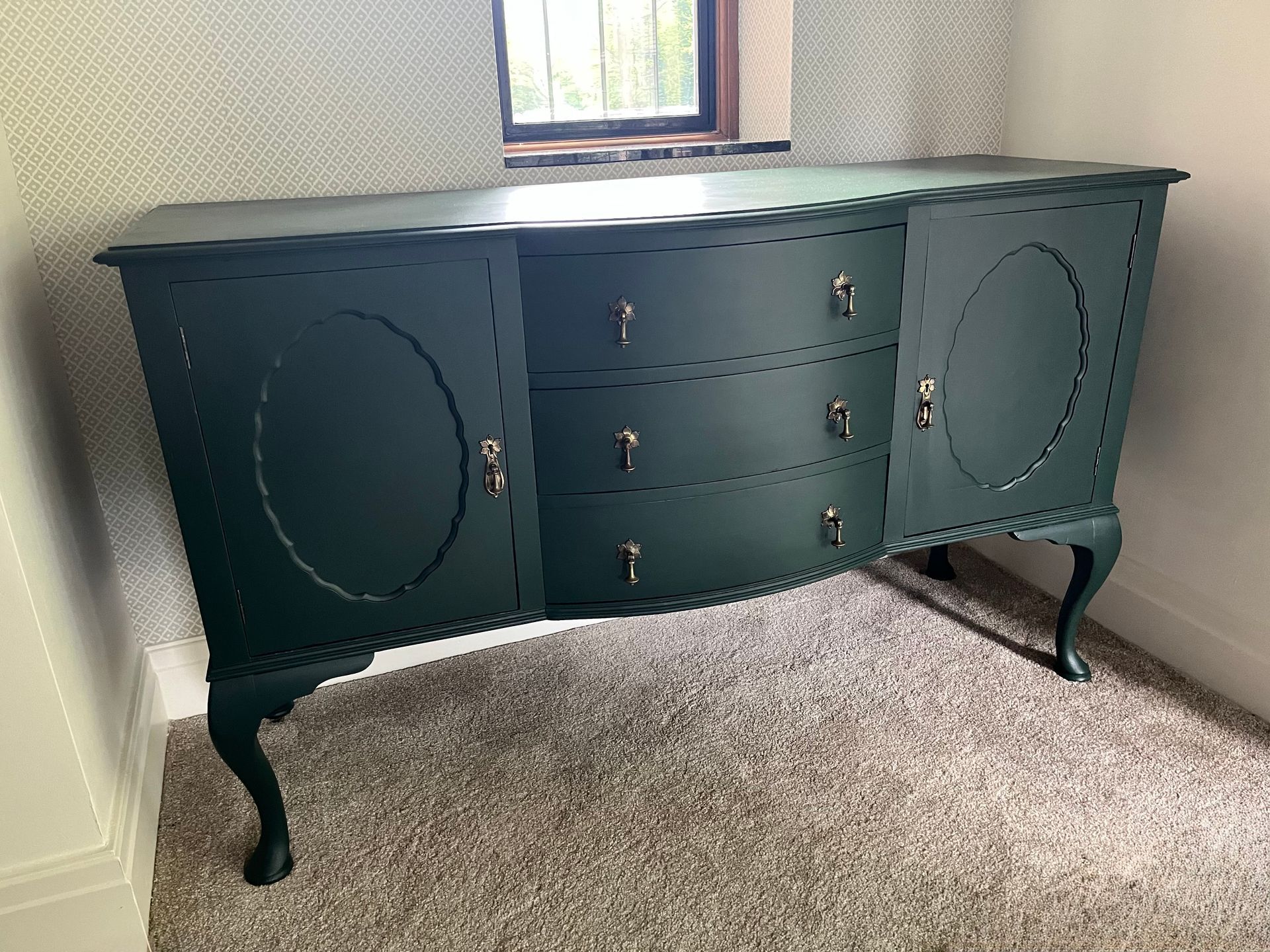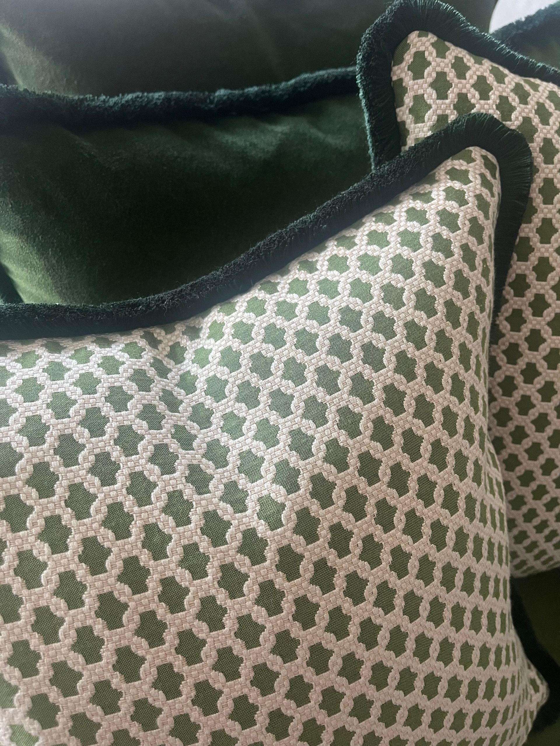 I made all of the scatter cushions and softened the fitted lighting throughout. Where possible, I like to incorporate a unique piece of hand-painted furniture into a design, and in this case it was a vintage side unit which I upcycled in a bold green.